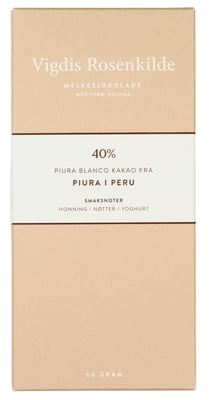 40% Piura Melkesjokolade med Quinoa Vigdis Rosenkilde