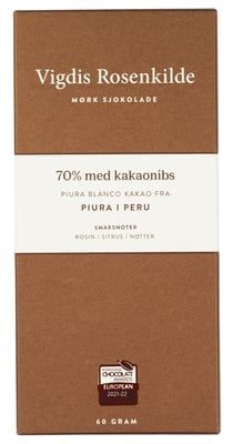 70% Piura med Kakaonibs Mørk Sjokolade fra Vigdis Rosenkilde er et produkt innen Snacks & godteri, Sjokolade. Vekten er 60 g. Produktet leveres av DIVERSEMAKERIET VIGDIS MERETE GIERTSEN. Produktet ble første gang registrert 11.6.2023 og sist oppdatert 6.9.2023.