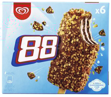 Heartbrand 88 er en vanilje- og issjokoladeis dekket med en nøtteskorpe. 88-en passer både til hverdagskos og mer festlige anledninger som fester. En god is er aldri feil og passer til enhver anledning, så sørg for å nyte gleden av iskrem på pinne. Våre grunnleggere hadde visjonen om å spre glede gjennom deilig og velsmakende iskrem hvis magi bringer oss sammen og smelter bort barrierene mellom mennesker. Vi ønsker å gjøre folk glade. Hver dag. Vårt mål er å tilby iskrem av god kvalitet til deg samtidig som vi ønsker at produktene våre skal overgå dine forventninger hver gang. Hvert år produserer vi populære klassikere så vel som nyheter med nøye utvalgte ingredienser og hensyn til miljøet. Vi vil sørge for at det finnes en is for alle og håper du kan finne mer enn én favoritt blant isene vi tilbyr!