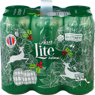 Aass Lite Juleøl er et mørkt glutenfritt øl med 30% færre kalorier og 70% færre karbohydrater.