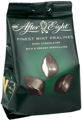 After Eight Bag 136g fra AFTER EIGHT er et produkt innen Snacks & godteri, Sjokolade. Produktet er tilgjengelig hos Coop til en pris av 55.90 kr. Produktet inneholder følgende allergener: Melk. Produktet leveres av NESTLÉ NORGE AS. Produktet ble første gang registrert 9.1.2022 og sist oppdatert 16.7.2023. Prisen har holdt seg stabil på 55.90 kr.