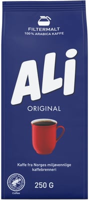 ALI Original har en perfekt balanse mellom god fylde, fin aroma og lett syrlighet som gir den gode smaken som kjennetegner ALI Kaffe. Kaffen består av 100 % Arabica-bønner fra Brasil og Colombia som dyrkes på 1.000 – 1.600 meters høyde. ALI Kaffe har en oppkvikkende effekt, samtidig som den er rund og mild, med god fylde og fin aroma - det er derfor vi med et lite glimt i øyet sier at den kurerer gruff. Kaffen er Rainforest Alliance-sertifisert som betyr at den er dyrket med respekt for både mennesker og natur. Les mer på www.ra.org ALI Kaffe blir produsert på Norges miljøvennlige kaffebrenneri. Du kan lese mer på www.alikaffe.no.