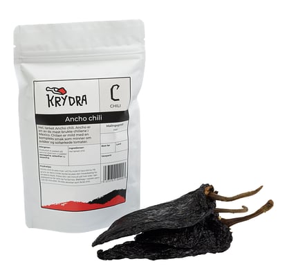 Ancho Chili, 50gr Hel Krydra fra Krydra Vekten er 50 g. Produktet leveres av KRYDRA AS. Produktet ble første gang registrert 11.6.2023 og sist oppdatert 6.9.2023.