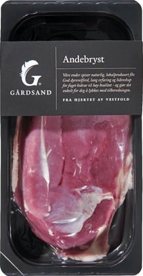 Gårdsand fra hjertet av Vestfold. Saftig og garantert mørt andebryst. God dyrevelferd, lang erfaring og lidenskap for faget bidrar til den aller beste kvalitet - og gjør det enkelt å lykkes på kjøkkenet.