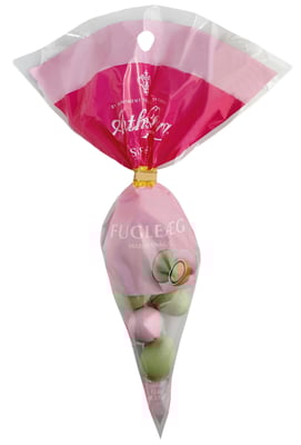 Sukker, kakaomasse, mandler 12%, aprikoskjerner, glukosesirup, melkesukker, kakaosmør, helmelkspulver, fortykningsmiddel (arabisk gummi), fargestoffer (titaniumdioksid, karoten, karmin, klorofyll-kobber-kompleks), emulgator (rapslecitin), konserveringsmiddel (sorbinsyre), helt herdnet vegetabilsk fett (palmekjerne), fuktighetsbevarende middel (invertase).