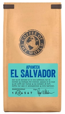 Coffee of the World limited edition. Selv om El Salvador er et lite kaffeland, har de stolthet og tradisjon for kvalitet. Apaneca er en rund og søt kaffe med vanilje og lys karamell på duft. Kaffen har smak av melkesjokolade og lette bærtoner. Apaneca El