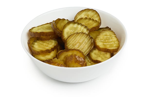 Riflekuttede agurkskiver i lake av vann, sukker, eddik, salt, sennepsfrø, karvefrø, konserveringsmiddel: Natriumbenzoat (E211) Kaliumsorbat (E202), surhetsregulerendemiddel: Kalsiumklorid (E509), farge: Riboflavin (E101) og naturlig aroma.
