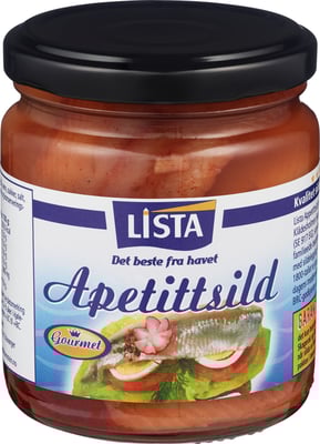 Apetittsild 300g fra Lista er et produkt innen Pålegg & frokost, Fiskepålegg, Sild/ansjos. Vekten er 300 g. Produktet inneholder følgende allergener: Fisk. Produktet leveres av DOMSTEIN SJØMAT AS. Produktet ble første gang registrert 11.6.2023 og sist oppdatert 6.9.2023.