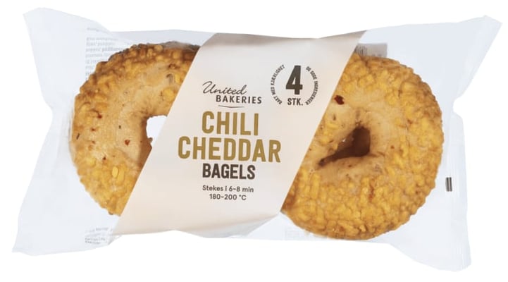 Bagels Chili/Cheddar 4pk 480g United B.