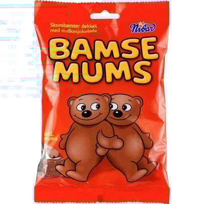 Bamsemums er søte, lubne skumbamser med sjokoladetrekk fra Nidar. Siden skumbamsene gjorde sitt inntog, har vi nordmenn latt oss sjarmere og lagt vår elsk på de små, søte skumbamsene. 18 STK PER KARTONGTrykk her for mer informasjon Oppgi ditt postnummer f