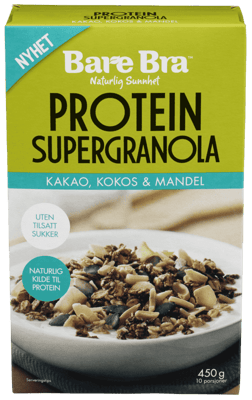 Bare Bra Supergranola Protein 450g fra BARE BRA Produktet er tilgjengelig hos Coop til en pris av 51.90 kr. Produktet leveres av ORKLA FOODS NORGE AS (STABBURET). Produktet ble første gang registrert 9.1.2022 og sist oppdatert 16.7.2023. Prisen har holdt seg stabil på 51.90 kr.