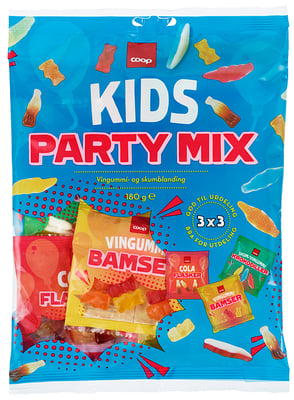 Bamser Glukosesirup, sukker, gelatin (fra gris), syre (E 330), frukt- og grønnsakskonsentrat (gresskar, eple, gulrot, solbær), aroma, kokos- og rapsolje, overflatebehandlingsmiddel (E 903), plantekonsentrat (spirulina). Kan inneholde spor av hvete. Krokodiller Glukosesirup, sukker, gelatin (fra gris), syre (E 330), aroma, kokos- og rapsolje, overflatebehandlingsmiddel (E 903), fargestoff (E 100, E 163, E 160c), frukt- og plantekonsentrat (eple, spirulina, saflor). Kan inneholde spor av hvete. Colaflasker Glukosesirup, sukker, gelatin (fra gris), syre (E 330), fargestoff (E 150a), aroma, kokos- og rapsolje, overflatebehandlingsmiddel (E 903). Kan inneholde spor av hvete.