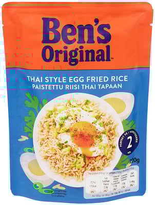 dampet parboiled langkornet ris (86%), eggerøre (7.1%) (egg fra frittgënde høner utendørs (4.7%), helmelk, vann, rapsolje, majsmel, konsentrert sitronjuice, salt, krydderi), løk,