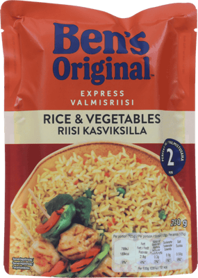 Bens Ris med Grønnsaker 250g fra MARS Produktet er tilgjengelig hos Coop til en pris av 32.90 kr. Produktet leveres av MARS NORGE AS. Produktet ble første gang registrert 9.1.2022 og sist oppdatert 16.7.2023. Prisen har holdt seg stabil på 32.90 kr.
