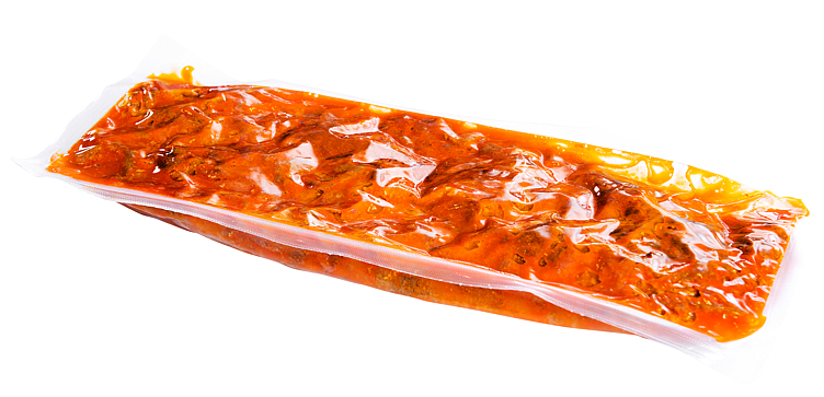 92% strimlet storfekjøtt, vegetabilsk olje (raps), salt, paprika, sukker, hvitløk, dekstrose (mais), kryderblanding, stabilisator (difosfat+trifosfat), antioksidant (natriumsitrat).