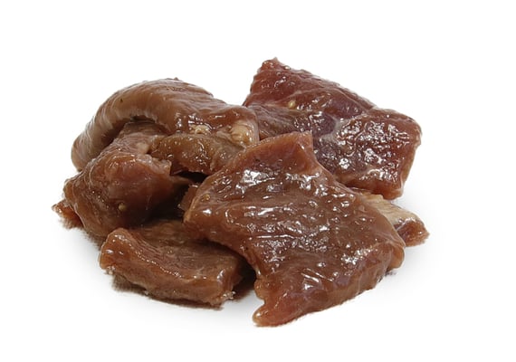 Storfe bankekjøtt (75%), vann, rapsolje, stabilisator (E331, E262, E500), sort pepper