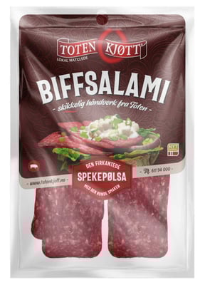 Biffsalami skivet 100g Toten Kjøtt fra Toten kjøtt er et produkt innen Pålegg & frokost, Kjøttpålegg, Saltpølser. Produktet er tilgjengelig hos Joker til en pris av 48.90 kr. Produktet inneholder følgende allergener: Melk, Selleri, Sennep. Produktet leveres av Toten kjøtt as. Produktet ble første gang registrert 9.1.2022 og sist oppdatert 6.10.2023. Prisen har holdt seg stabil på 48.90 kr.