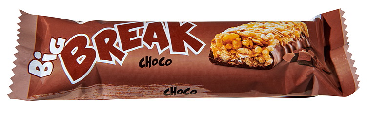 Big Break Choco 40g Vekten er 0.04 kg. Produktet inneholder følgende allergener: Gluten, Melk, Soya. Produktet leveres av CALAS AS. Produktet ble første gang registrert 11.6.2023 og sist oppdatert 6.9.2023.