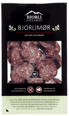 Bjorli Bjorlimør 120g fra BJORLI er et produkt innen Pålegg & frokost, Spekemat, Spekepølser. Produktet er tilgjengelig hos Coop til en pris av 39.90 kr. Produktet leveres av BJORLI FJELLMAT AS. Produktet ble første gang registrert 9.1.2022 og sist oppdatert 16.7.2023. Prisen har holdt seg stabil på 39.90 kr.