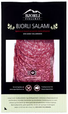 Bjorlisalami 120 Gr, Skåret er et produkt innen Pålegg & frokost, Kjøttpålegg, Saltpølser. Vekten er 120 g. Produktet leveres av BJORLI FJELLMAT AS. Produktet ble første gang registrert 11.6.2023 og sist oppdatert 6.9.2023.