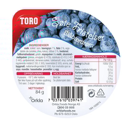 Blåbærdrøm Sf 125ml Toro fra Toro Vekten er 125 ml. Produktet inneholder følgende allergener: Gluten, Melk. Produktet leveres av ORKLA FOODS NORGE AS. Produktet ble første gang registrert 11.6.2023 og sist oppdatert 6.9.2023.