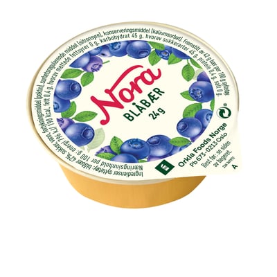 Blåbærsylt Porsj 24g Nora fra Nora Vekten er 1920 g. Produktet leveres av ORKLA FOODS NORGE AS. Produktet ble første gang registrert 11.6.2023 og sist oppdatert 6.9.2023.
