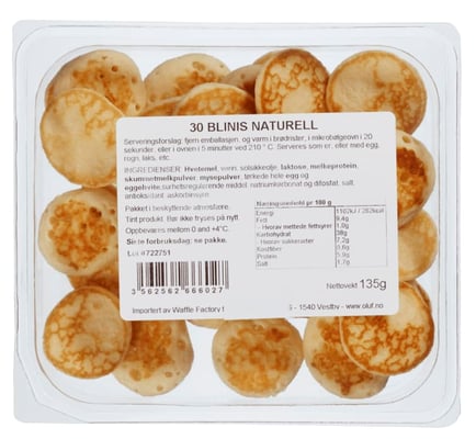 Blinis Coctail 30stk 135g Waffle Factory fra Waffle factory er et produkt innen Middag, Ferdigmåltider, Pannekaker. Produktet er tilgjengelig hos Meny til en pris av 81.00 kr. Produktet inneholder følgende allergener: Egg, Gluten, Melk. Produktet leveres av Oluf lorentzen as. Produktet ble første gang registrert 10.1.2022 og sist oppdatert 3.8.2023. Prisen har holdt seg stabil på 81.00 kr.