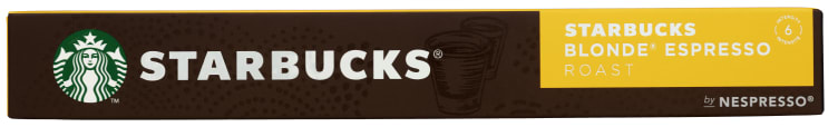 • STARBUCKS by NESPRESSO kaffekapsler med runde og søte toner. • Rund og mild smak. Dette er våre mest lysbrente espresso. • Disse kaffekapslene kan anvendes i en NESPRESSO kaffemaskin. • Enjoy STARBUCKS at home. Kaffen du elsker, kan du nå nyte hjemme. • Denne unike kaffeblanding av bønner fra Latinamerika har blitt brent med forsiktighet for å få fram de søte og vitale tonene • Vi har forpliktet oss til 100% etisk dyrket kaffe med Conservation International som partnere.