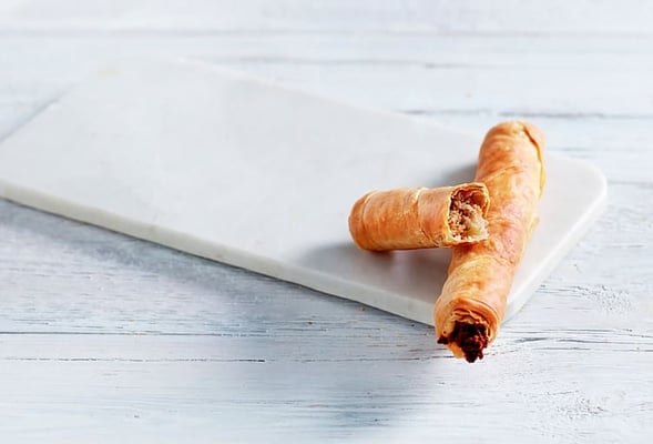 Deig 62,5 % [ hvetemel, vann, vegetabilske oljer (palmeolje, bomullsfrøolje og solsikkefrøolje), maisstivelse, salt, sukker]. fyll 37,5% [kyllingfyll 35 % [kyllingkjøtt 90 %, vann, salt, soyaprotein, melkeprotein, gjærekstrakt, aroma, smaksforsterker (e621), stabilisator (e452)], soppfyll [champignon, salt, syre (e330), antioksidant (e300)], blanding 4 oster 14 % [goudaost (pasteurisert kumelk, salt, startkultur, løpe, fargestoff (e160a)), gruyereost, kefalotiriost og kaseriost (pasteurisert melk fra sau og geit, salt, startkultur, løpe)], bechamelpulver [modifisert potetstivelse, skummetmelkpulver, palmeolje, glukose, salt, stabilisatorer (e401, e452), antiklumpemiddel (e401), aroma], grønn paprika, rød paprika, vann, pasteuriserte egg, fløte fra sauemelk, eggehvitepulver, salt, hvit pepper.Prosesseringsanalyse