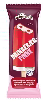 bringebær saftis (53,8 %) (vann, sukker, bringebær (2,8 %), glukosesirup, svart gulrotjuice konsentrat, surhetsregulerende middel (sitronsyre), aroma, bringebærkonsentrat, stabilisator (guarkjernemel, natriumalginat, karragenan, pektiner), konserveringsmiddel (kaliumsorbat), fargestoff (antocyaner)), fløteis (37,7 %) (vann, kremfløte (28,8 %), sukker, skummetmelkpulver, mysepulver, glukosesirup, emulgator (mono- og diglyserider av fettsyrer), stabilisator (johannesbrødkjernemel, guarkjernemel, karragenan), aroma (vanillin), fargestoff (annattoekstrakter)), bringebærsyltetøy (8,5 %) (bringebær, sukker, stabilisator (pektiner), vann, konserveringsmiddel (sitronsyre, kaliumsorbat)).