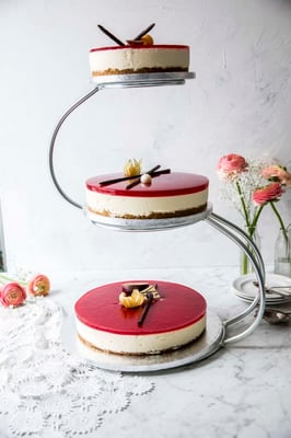 Ostekrem (sukker, fløte, kremost (pasteurisert melk og fløte, salt, stabilisator (e410, e412), syrekultur), yoghurt, pasjonsfruktjuice, helmelk, appelsinjuice, fortykningsmiddel (e440, e466, gelatin (svin)), emulgator (e471, e472e), surhetsregulerende middel (e330), konserveringsmiddel (e202), vaniljearoma, modifisert maisstivelse, vaniljeekstrakt, vaniljefrø, melkesyrekultur, løpe), gele (bringebærpure, sukker, glukose, vann, fortykningsmiddel (e440, e415), surhetsregulerende middel (e330), aroma, konserveringsmiddel (e202)), kjeksbunn ( havregryn, meierismør, vegetabilsk olje (solsikke, shea, kokos), hvetemel (med byggmalt ), sammalt hvete, sukker, demerarasukker, sirup, hevemiddel (e500), salt), pynt (sukker, kakaomasse, -smør og -pulver, melkepulver, laktose, mysepulver, melkeprotein, rismel, salt, veg. olje (palme, palmekjerne, kokos, raps), smørolje (m/ melk ), glukosesirup, vann, hvetegluten, maltmel av hvete, emulgator (e322 soya /solsikkelecitin, e471), aroma (vanilje), glyserol, konsistensmiddel (e414, e440, e476), surhetsregulerende middel (e330), farge (e100, e120, e133, e151, e153, e155, e160ac, e162, e163, e170, e171, e172), ekstrakt (spirulina, spinat, gulrot, carthamus), antioksidant (e304, e306), overflatebehandlingsmiddel (e904), konserveringsmiddel (e202)).Prosesseringsanalyse