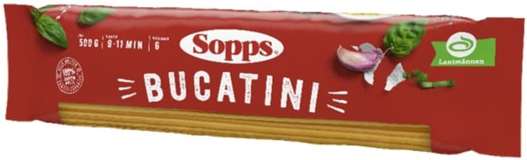 Bucatini 500g Sopps fra Sopps er et produkt innen Middag, Pasta, Spagetti. Produktet er tilgjengelig hos Meny til en pris av 14.50 kr. Produktet inneholder følgende allergener: Gluten. Produktet leveres av Lantmännen cerealia as. Produktet ble første gang registrert 15.7.2022 og sist oppdatert 16.7.2023. Prisen har endret seg fra 27.90 kr til 14.50 kr over tid.