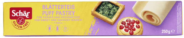 Glutenfri butterdeig fra Schär. Helt fersk smørdeig rett fra fryseren som kan brukes til bakst, nøttestek, pai og andre middagsretter.
