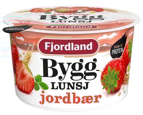 Fjordland Bygglunsj er en miniversjon av byggrynsgrøten. kun tilsatt litt fløte. Det er det unike Skjåkgrynet. med de ernæringsmessige kvalitetene og den spesielle sødmefylte smaken som gjør bygglunsjen til et sunt og godt mellommåltid. Begeret inneholder et friskt jordbærsyltetøy som kan helles over. I tillegg er det lagt ved en skje. slik at den egner seg godt som et ”på farten” måltid.