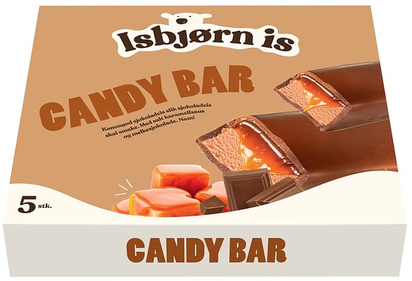 Candy Bar Vekten er 370 ml. Produktet inneholder følgende allergener: Melk, Soya. Produktet leveres av ISBJØRN IS AS. Produktet ble første gang registrert 11.6.2023 og sist oppdatert 6.9.2023.