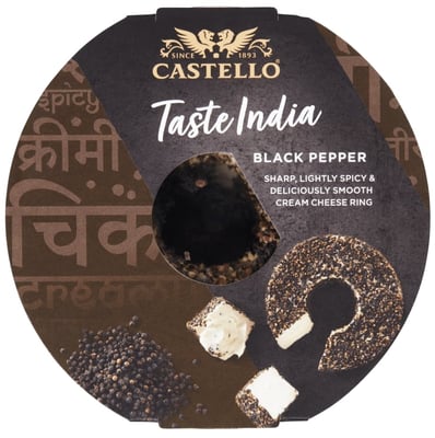 Castello® Kremostring Pepper er en pasteurisert kremost. Smaken er kraftig krydret av pepper. Konsistensen er kremet og lett smørbar. Osten er formet som en ring og dekorert med en pepperblanding, som gir osten et innbydende utseende.