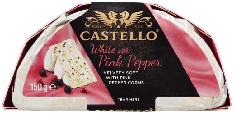 Castello Pink Pepper 150g fra Castello Produktet er tilgjengelig hos Meny til en pris av 30.24 kr. Produktet inneholder følgende allergener: Melk. Produktet leveres av Arla foods as. Produktet ble første gang registrert 9.1.2022 og sist oppdatert 16.7.2023. Prisen har endret seg fra 41.90 kr til 30.24 kr over tid.