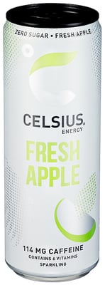 Celsius Fresh Apple 355ml bx Vekten er 0.36 l. Produktet leveres av MULTIBEV AS. Produktet ble første gang registrert 11.6.2023 og sist oppdatert 6.9.2023.