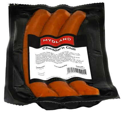 Cheddar og Chilipølse 310g Pk Mydland fra Mydland Vekten er 0.31 kg. Produktet inneholder følgende allergener: Melk. Produktet leveres av H MYDLAND AS. Produktet ble første gang registrert 11.6.2023 og sist oppdatert 6.9.2023.