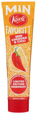 Min Kavlifavoritt er et limited edition smøreost-konsept fra Kavli, utviklet av og for folket. Min Kavlifavoritt Cheddar&Chili er stemt frem ac folket i 2022 og har en deilig kombinasjon av smakfull cheddar og en ekstra piff fra chili