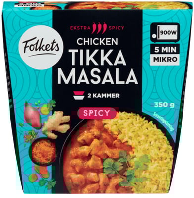 Folkets Chicken Tikka Masala er en rett som er godt kjent fra det indiske kjøkken. Dette er en sterk versjon fylt med autentiske smaker. Tilberedes i mikrobølgeovn