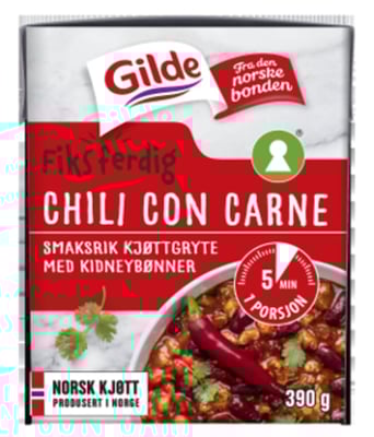 Chili Con Carne 390g Gilde fra Gilde er et produkt innen Middag, Middagshermetikk. Produktet er tilgjengelig hos SPAR til en pris av 59.90 kr. Vekten er 390 g. Produktet leveres av Nortura sa p. Produktet ble første gang registrert 9.1.2022 og sist oppdatert 19.9.2023. Prisen har holdt seg stabil på 59.90 kr.