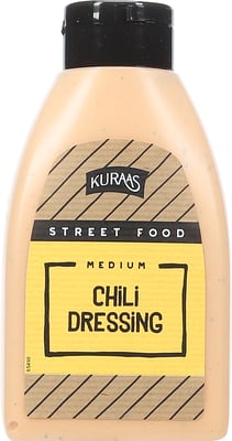 Rapsolje, vann, eggeplomme, chilipuré, sitronsaft, sukker, sennepsfrø, krydder (hvitløk, persille, pepper, chili, koriander, karve, cayennepepper), tomatpuré, stabilisator (guarkjernemel, xantangummi, modifisert potetstivelse), salt, eddik, konserveringsmiddel (kaliumsorbat, natriumbenzoat), surhetsregulerende middel (eplesyre, sitronsyre), paprika ekstrakt, naturlig aroma.Prosesseringsanalyse