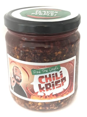 Fenomenet chili chrisp oppstod i Kina flere tiår tilbake, og har nå spredt seg som «chili i tørt gress» verden om. Med det helnorske tilbehøret Chili Krisp, bringer Fred the Chef dette internasjonale fenomenet til Norge. Chili Krisp er ubestridelig kjøttets nye bestevenn, da det passer ypperlig til alt fra biff til pølser og ulike kjøttretter. Vi kan for eksempel anbefale å blande krydderet med creme fraiche for å lage et spicy tilbehør til biffen. Du kan også drysse Chili Krisp over salat, kylling, pizza, nudler, frukt og til og med iskrem.
