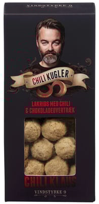 Melkesjokolade 61% (sukker, melkepulver, kakaomasse, kakasmør, mysepulver, emulgator: soyalecitin E322, naturlig vaniljearoma), søt lakris 35% (sukker, hvetemel, invertsukker, vann, glukosesirup, kakaosmør, salt, lakris, sirup, kakaomasse, herdet palmekjerneolje, emulgator: solsikke- og soyalecitin E322, sorbitantristererat E492), surhetsregulerende middel: ammoniumklorid E510, fargestoff: vegetabilsk karbon E153, chilipulver (Habanero) 1%, skummet melk pulver, anisolje, aroma, vanillin), lakrispulver 1%.