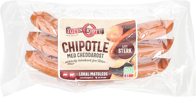 Chipotlepølse med Cheddar 230g Toten Kjøtt