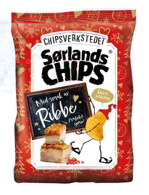 Sørlandschips Chipsverkstedet Ribbe. Julefavoritten er tilbake! Potetgull med smak av ribbe. Kan Østlandets ribbe slå Vestlandets pinnekjøtt? Bli med på årets julechipsavstemming. Sørlandschips er den originale chipsprodusenten på Sørlandet, kjent for eks