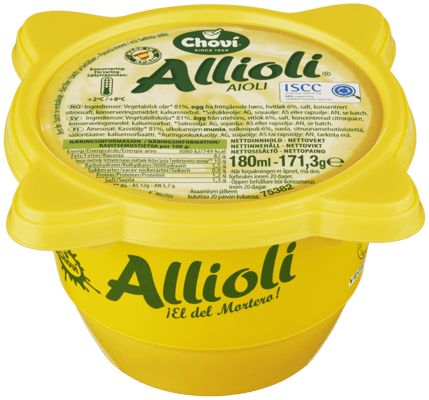 Chovi Allioli 180ml fra CHOVI er et produkt innen Middagstilbehør, Dressinger, Aioli. Produktet er tilgjengelig hos Coop til en pris av 34.90 kr. Produktet inneholder følgende allergener: Egg. Produktet leveres av GEIA FOOD AS. Produktet ble første gang registrert 15.7.2022 og sist oppdatert 16.7.2023. Prisen har holdt seg stabil på 34.90 kr.