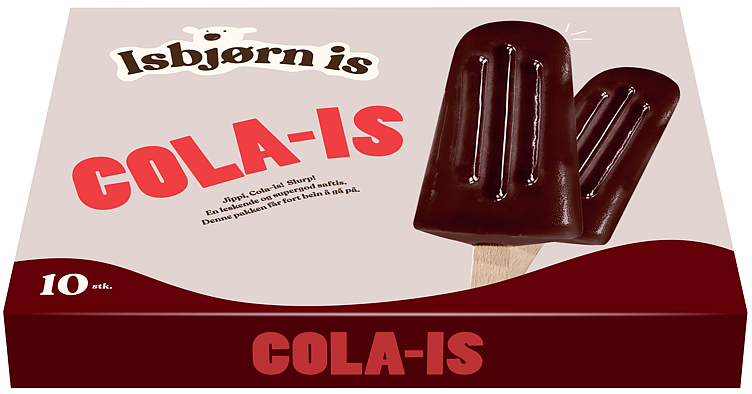 Cola-is 10 stk Vekten er 630 ml. Produktet leveres av ISBJØRN IS AS. Produktet ble første gang registrert 11.6.2023 og sist oppdatert 6.9.2023.