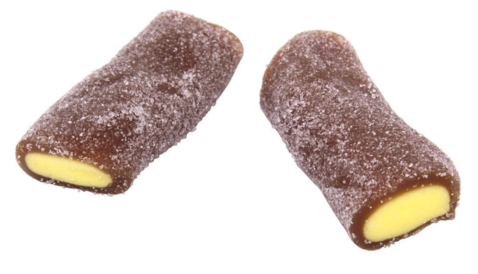 Sukker, glukose-fruktosesirup, invertsukkersirup, hvetemel, maisstivelse, vegetabilsk fett (kokos), syrer (E296, E330), fuktighetsbevarende middel (E422), potetstivelse, gelatin (storfe), naturlig aroma, frukt- og plantekonsentrat (sitron, saflor), fargestoffer (E100, E150d).